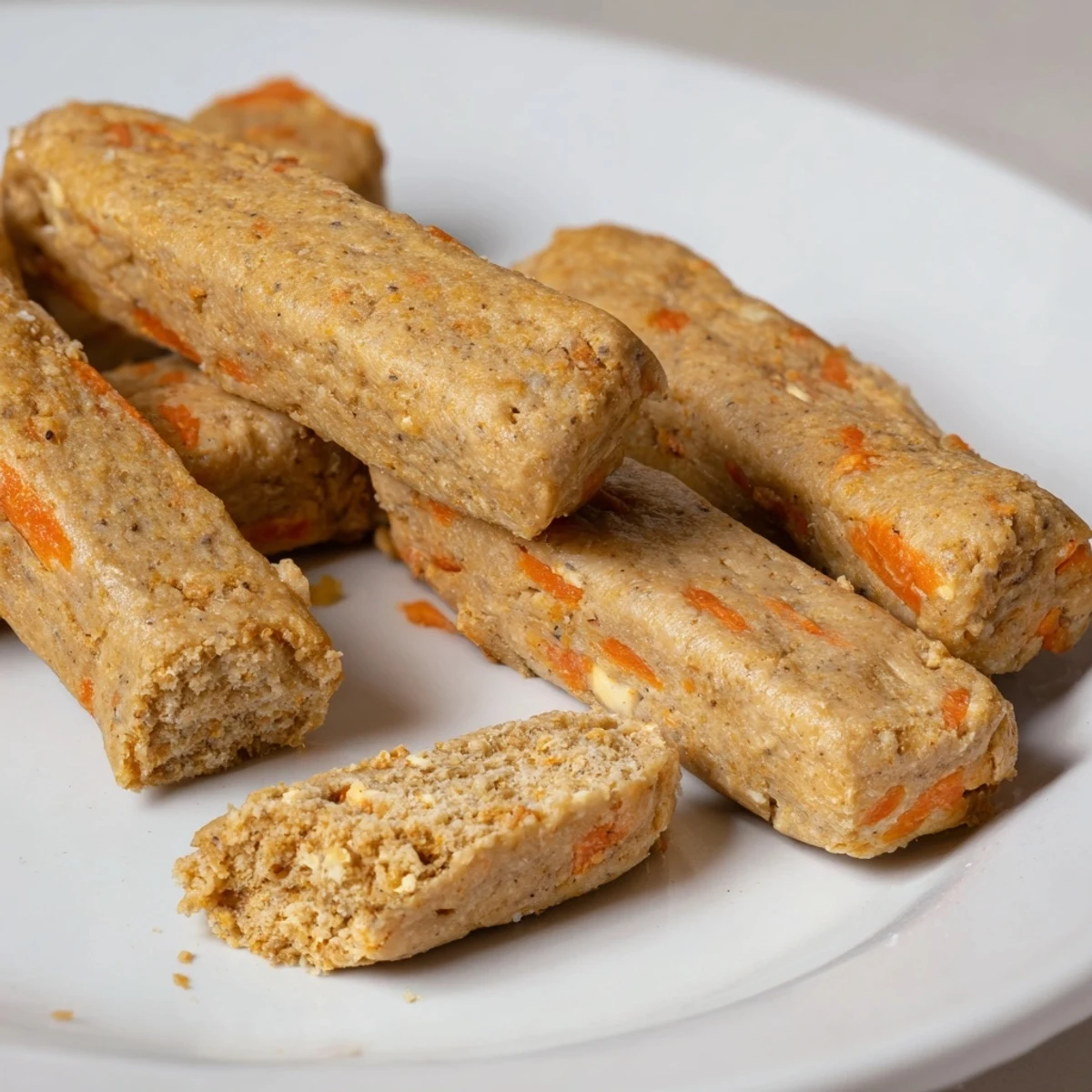 These wholesome chew sticks combine fresh apples and grated carrots with whole wheat flour and oats for a nutritious dog treat your pup will love. The dough comes together quickly and bakes into firm, satisfying chews that help keep dogs busy while providing vitamins and fiber. With just 15 minutes of prep and 45 minutes in the oven, you'll have 16 stick treats ready for your furry friend. Store them in an airtight container for up to a week, or freeze extras for later. These vegetarian, gluten-free adaptable chews are perfect for dogs who love to gnaw and chew.