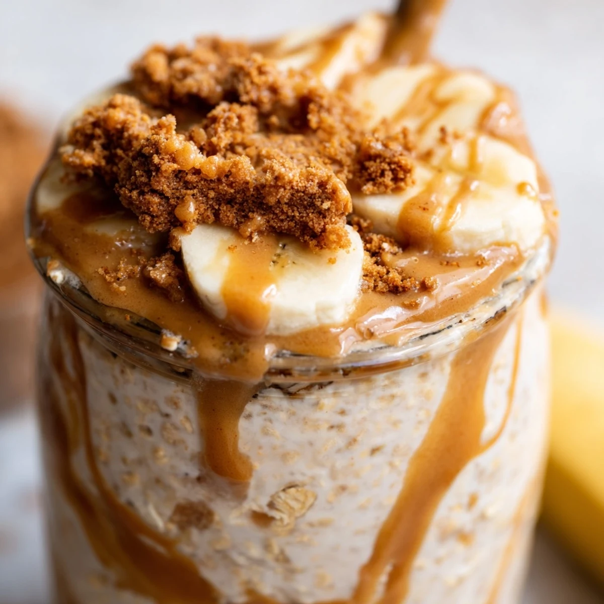 Start your morning with creamy, indulgent overnight oats featuring the rich caramelized flavor of Biscoff cookie butter. Simply mix rolled oats with milk, Greek yogurt, and velvety Biscoff spread before bed. In the morning, top with crushed cookies and melted Biscoff drizzle for that perfect crunch. This make-ahead breakfast comes together in just 10 minutes and keeps in the fridge for up to 2 days. Customize with your favorite fruits or nuts for extra texture. Each jar delivers protein, fiber, and that irresistible spiced cookie taste in every spoonful.